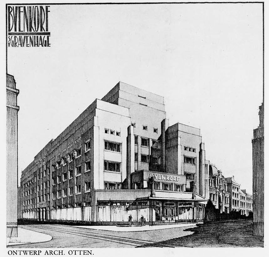 Today, we have their store in Den Haag (also known as 's Gravenhage). Thankfully this fine example of the Amsterdam school still stands. The building, designed by Piet Kramer and built in 1926, and refurbished in 1962 and again in 1997 at which point most of the features removed in the earlier refurbishment where reinstated.